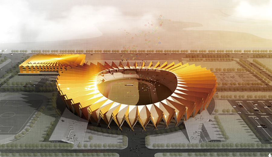 銅陵市體育中心體育場鋼結構罩棚,結構形式采用懸臂鋼結構管桁架體系,在桁架下設置V形鋼管支撐結構